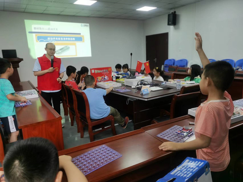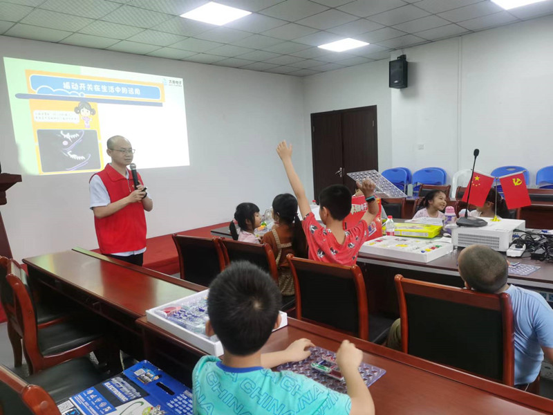 大禹電子第五期公益課:電子百拼(電子百拼積木),大禹電子技術鐘工聲情并茂的給孩子們講解“電子百拼”的知識。